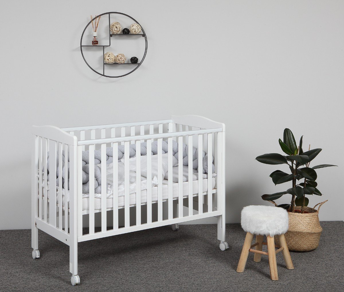 The crib has a height-adjustable bottom, and it can be put even diagonally, which effectively helps with colds in the baby. The side is adjustable too. It is possible to attach the crib to the parental crib.