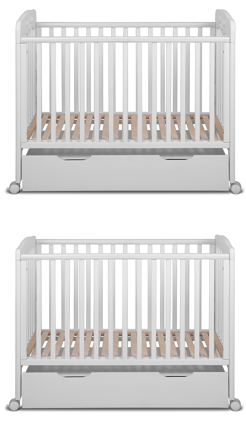 The crib has a height-adjustable bottom, and it can be put even diagonally, which effectively helps with colds in the baby. The side is adjustable too. It is possible to attach the crib to the parental crib.