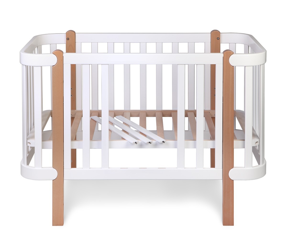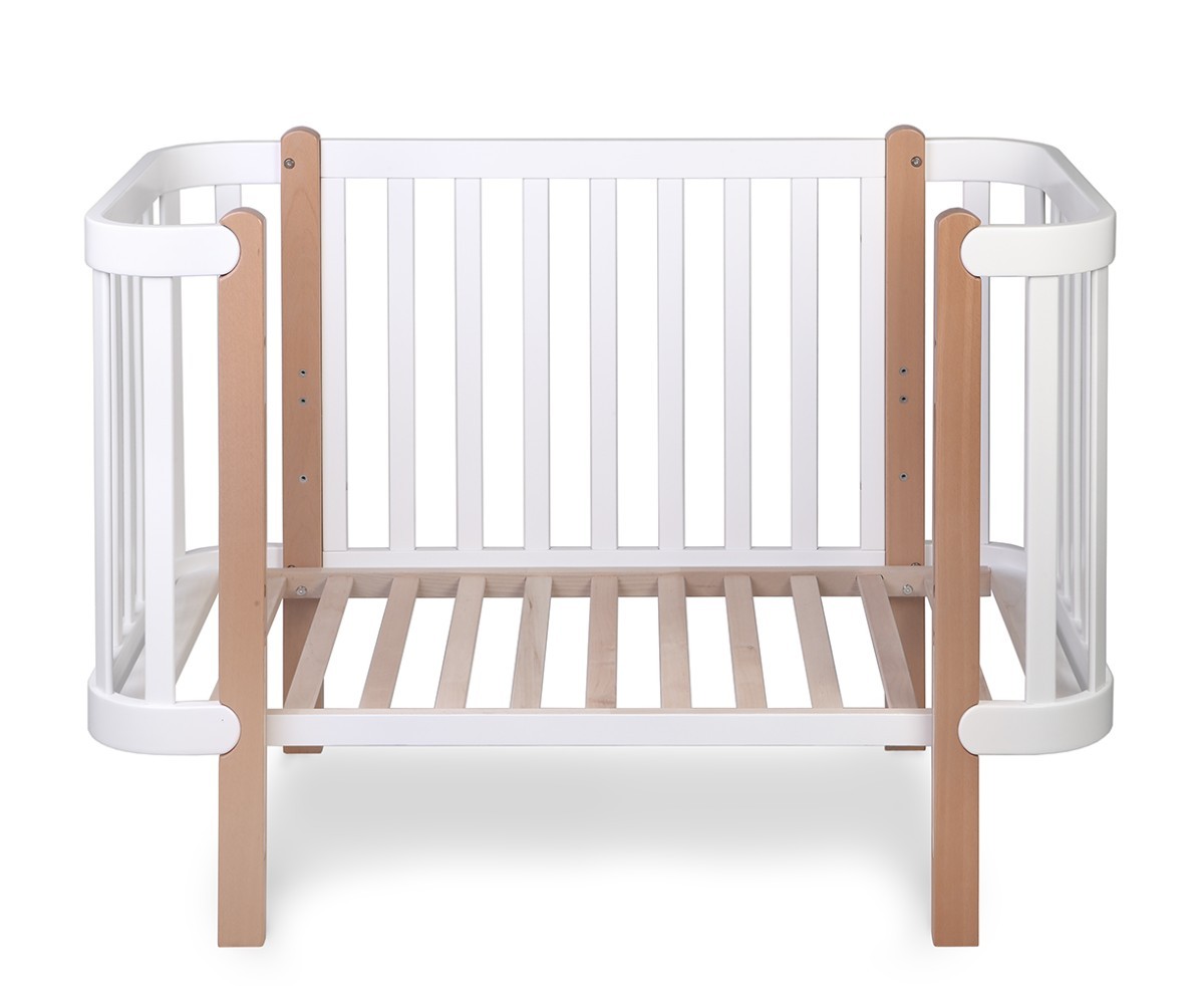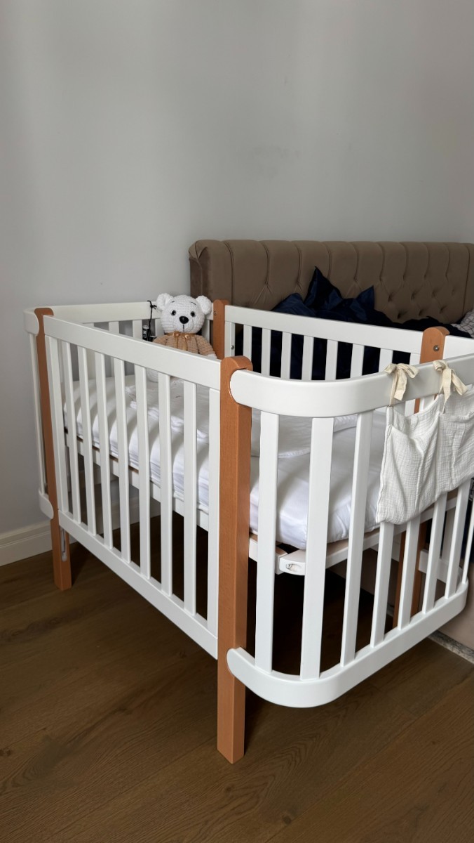 The crib has a height-adjustable bottom, and it can be put even diagonally, which effectively helps with colds in the baby. The side is adjustable too. It is possible to attach the crib to the parental crib.