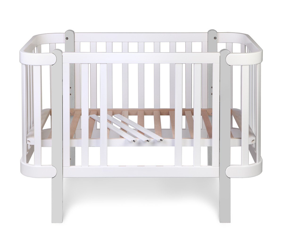 Gultiņai ir regulējams augstums, un to var novietot pat pa diagonāli, kas efektīvi palīdz mazulim pret saaukstēšanos. Arī sāni ir regulējami. Bērnu gultiņu ir iespējams piestiprināt pie vecāku gultiņas.