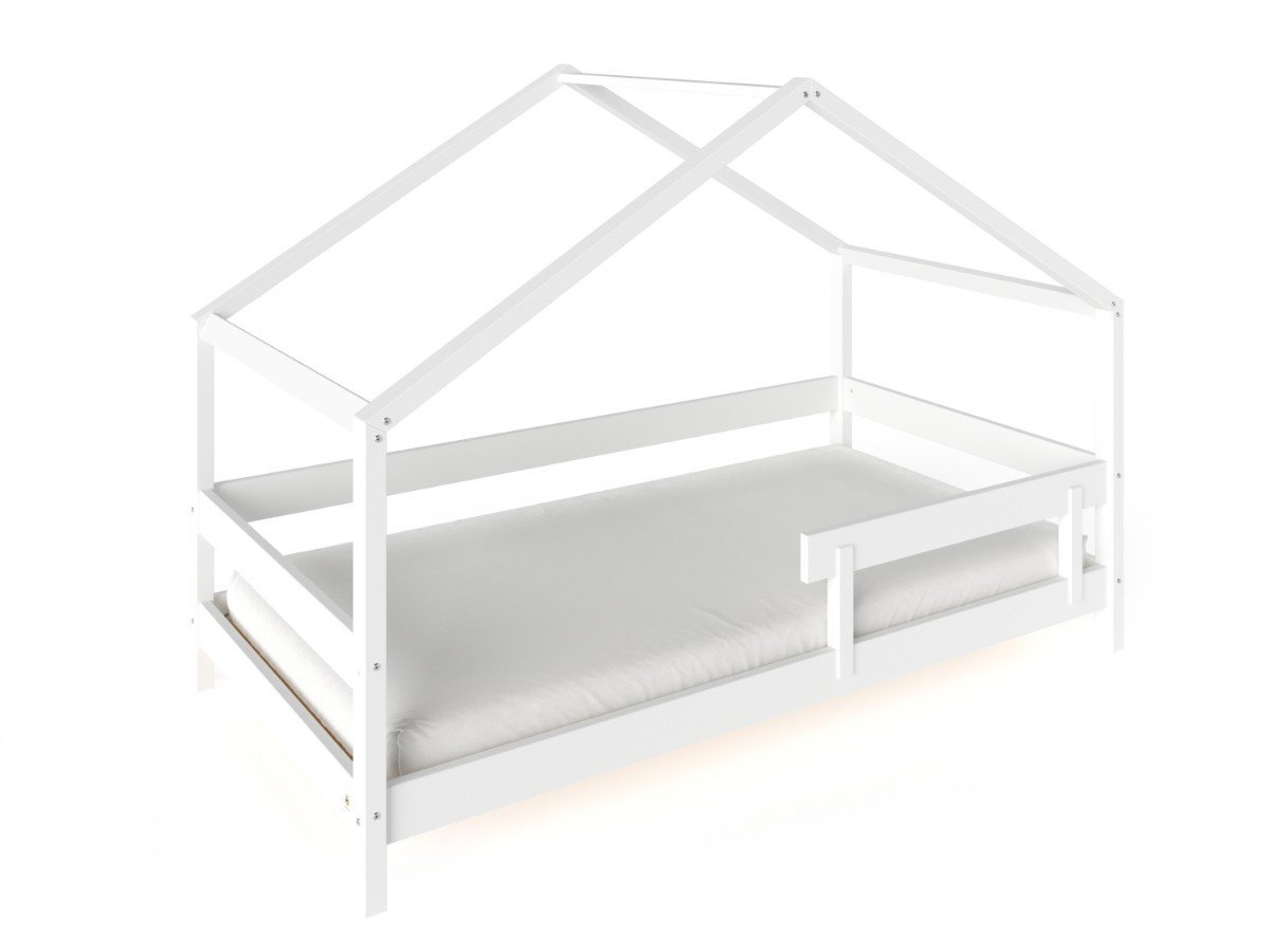 Komplektā mājas konstrukcijai iekļautas matrača bāzes detaļas un aizsarga sānu mala.