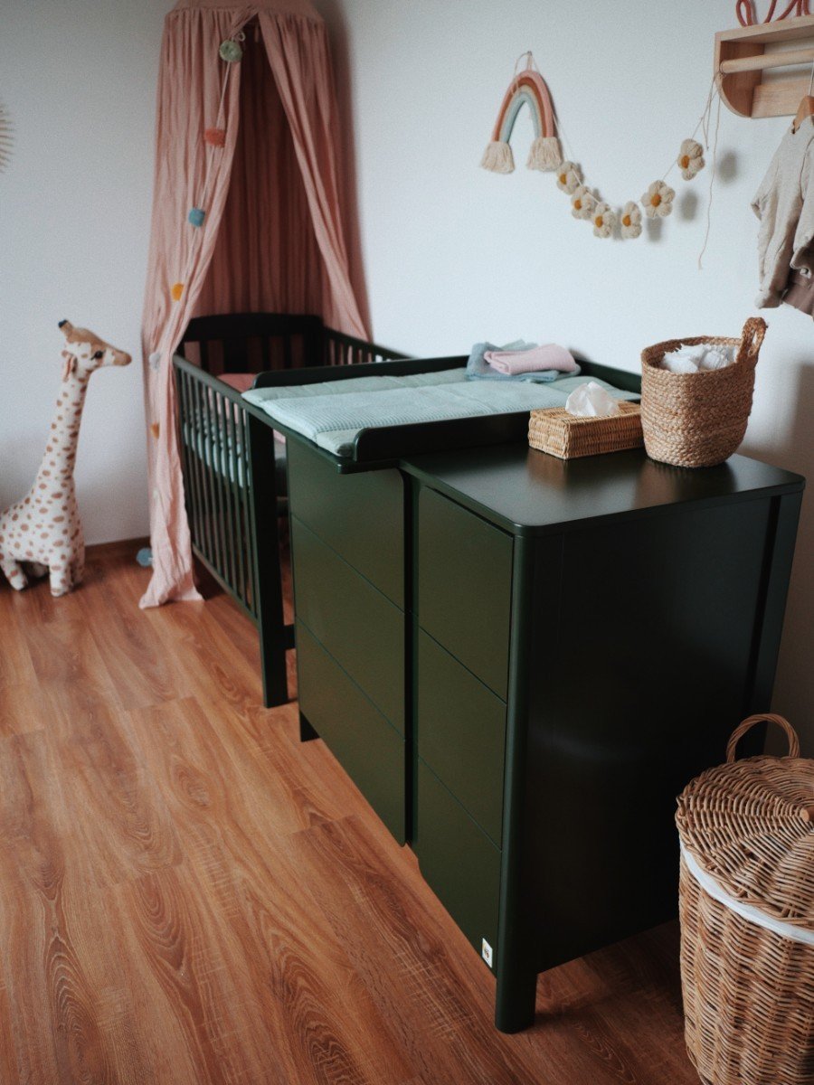 Izvelējāmies YappyÉtude bērnu gultiņu un kumodi. Dizainisksi skaistas mēbelītes, ļoti atsaucīgi konsultanti! Ergonomiski veidota kumode ar pārtinamo virsmu jaundzimušajiem, kas saudzē jaunās mammas muguru :) Mazulim augot lielākam, pārtinamo virsmu iespējams noņemt. Gultiņas pamatnes slīpumu iespējams regulēt, kas atvieglo jauno vecāku ikdienu, ja mazulim ir iesnas. Par vizuāli pievilcīgajām mēbelītēm esam saņēmuši daudz komplimentus no mūsu viesiem :)