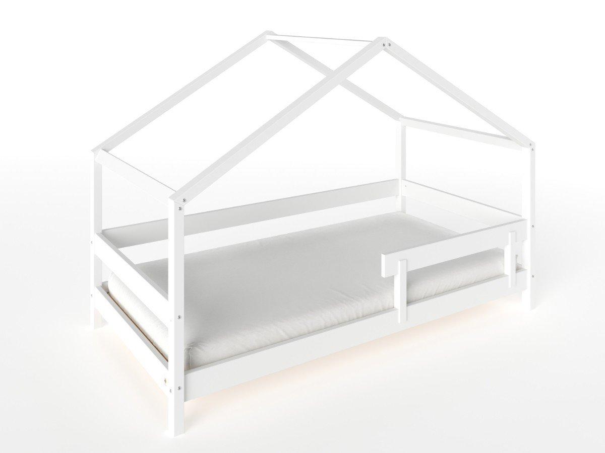 Komplektā mājas konstrukcijai iekļautas matrača bāzes detaļas un aizsarga sānu mala.